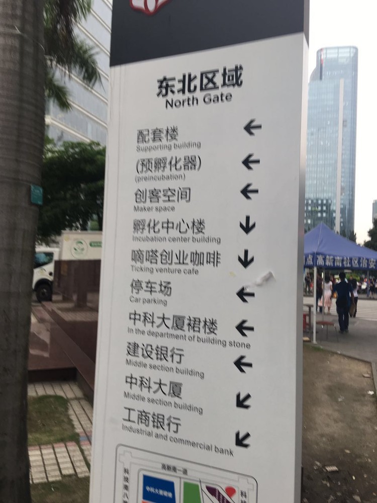 這些看起來(lái)沒(méi)什么錯(cuò)誤,是吧,但其實(shí)他們都很搞笑(funny)。這里,工商銀行,如果他們寫(xiě)ICBC,可能更好一點(diǎn)。中科大廈,Middle section building,也非常奇怪。