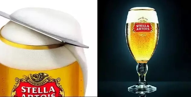 在營銷實戰(zhàn)中,更有甚者,為了作出不同,如果瓶子上沒有“不同”的機會,甚至可以用不同的杯子來進行視覺錘創(chuàng)新——這是時代啤酒(Stella Artois)1999年剛進入美國市場時所采用的戰(zhàn)略。不同于一般啤酒的塑料杯,它給酒吧提供特制的金色高腳杯和販賣時代啤酒時特殊的禮儀培訓,啤酒要保持在36-38華氏度之間,泡沫要用勺子刮掉。