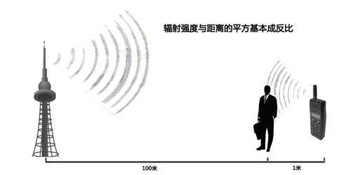我們大家都知道牛頓的萬(wàn)有引力定律,說(shuō)的是牛頓萬(wàn)有引力的大小與距離的平方成反比,距離中心天體越遠(yuǎn),引力就越弱。對(duì)于電磁輻射的功率面密度(也就是輻射強(qiáng)度),也存在類(lèi)似的“平方反比率”,我們可以把基站發(fā)出電磁波看成是一個(gè)以基站為球心的球面波(遠(yuǎn)場(chǎng)近似,很近距離來(lái)說(shuō)與球面有偏離,但這對(duì)物理分析來(lái)說(shuō)不是很重要)。那么,因?yàn)榭傒椛涔β室睾悖栽趩挝幻娣e上的功率面密度隨著距離的平方衰減——這一點(diǎn)與萬(wàn)有引力定律是相似的。