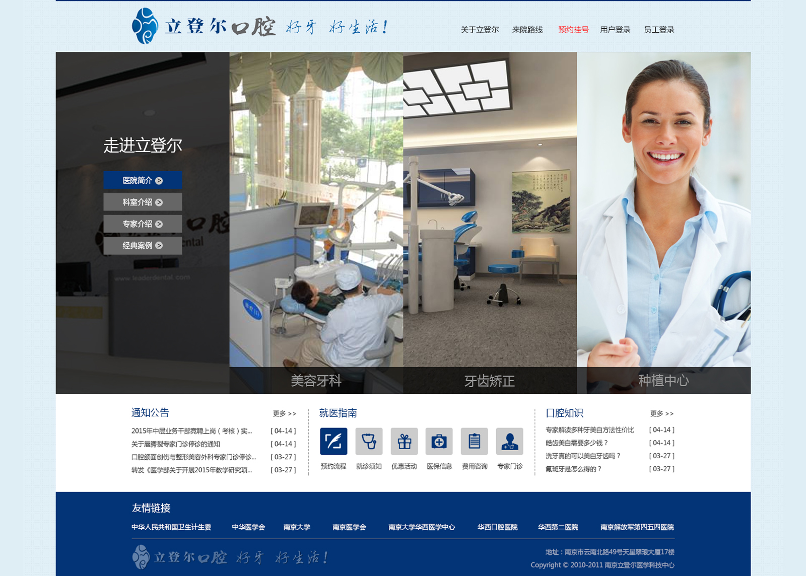 立登爾口腔醫(yī)療聯(lián)合體是由南京立登爾醫(yī)療科技股份有限公司投資或管理的多家專(zhuān)業(yè)從事口腔醫(yī)療服務(wù)的獨(dú)立醫(yī)療機(jī)構(gòu)或綜合性醫(yī)院口腔科聯(lián)合組成的。自1993年6月聯(lián)合體第一家口腔醫(yī)療機(jī)構(gòu)——南京東大口腔門(mén)診部(原南京鐵道醫(yī)學(xué)院綜合門(mén)診部)成立至今,建立了獨(dú)特的口腔醫(yī)療服務(wù)管理體系